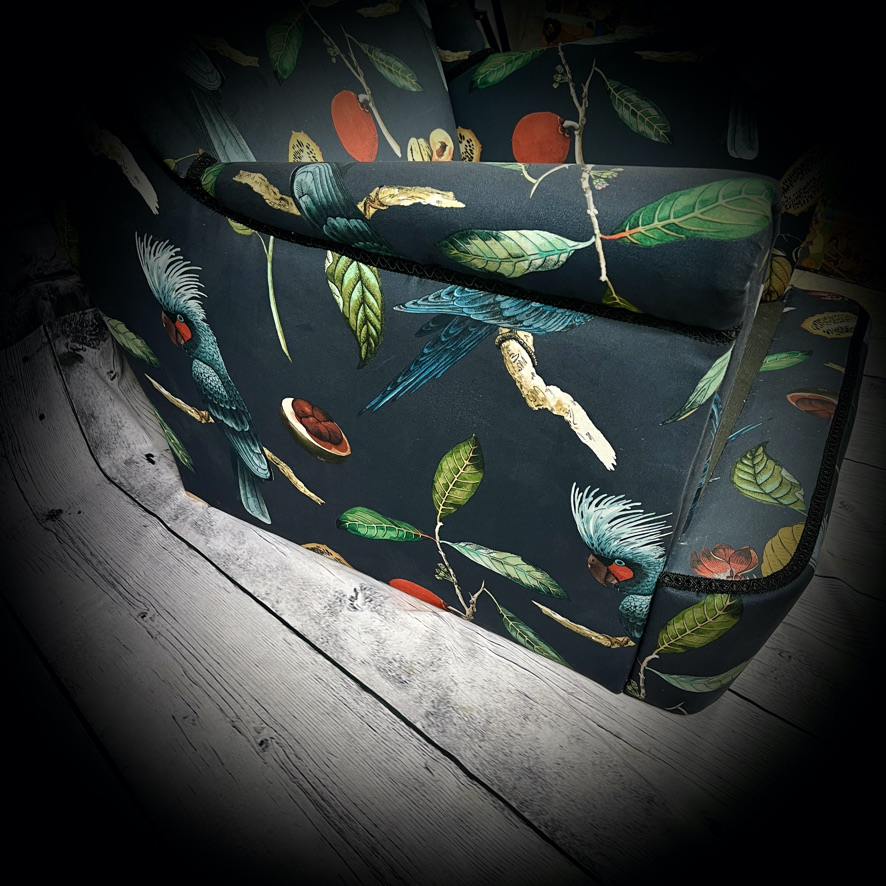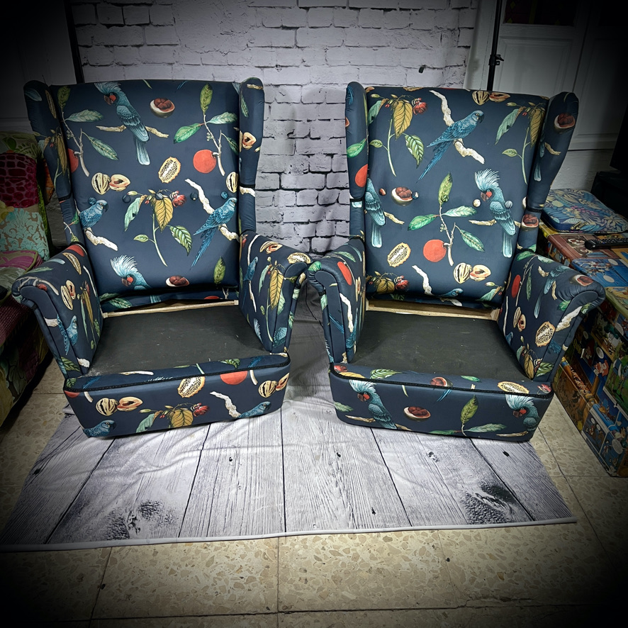 2 IKEA parrot armchairs 240415