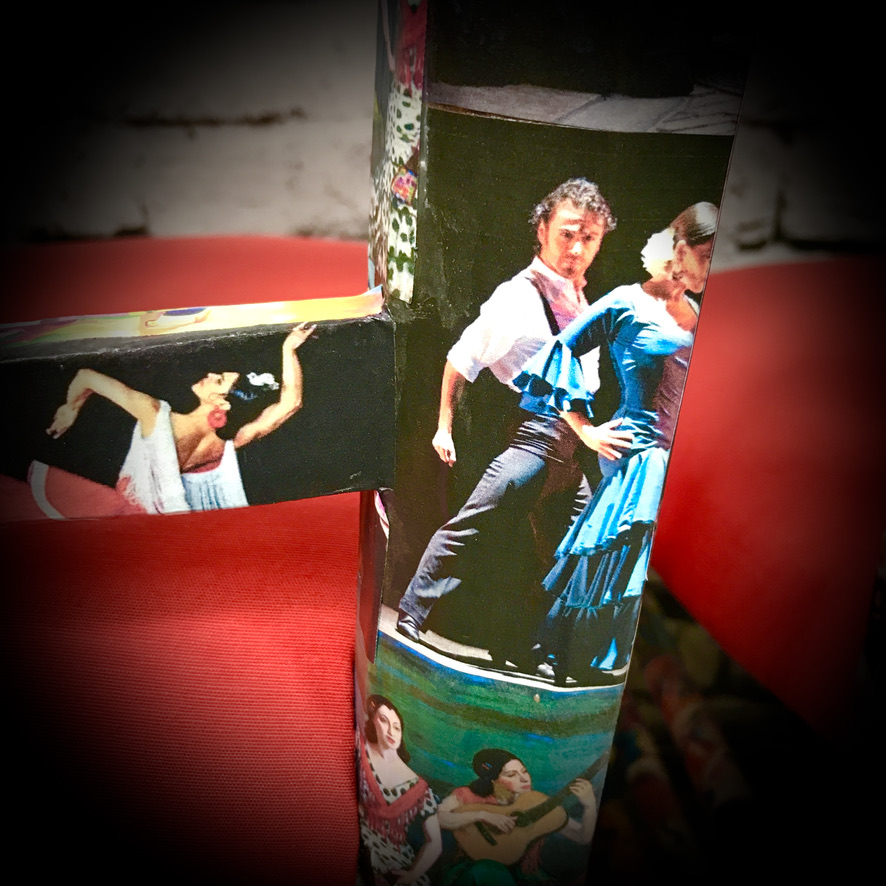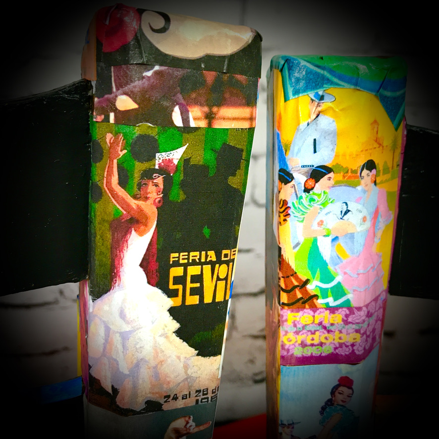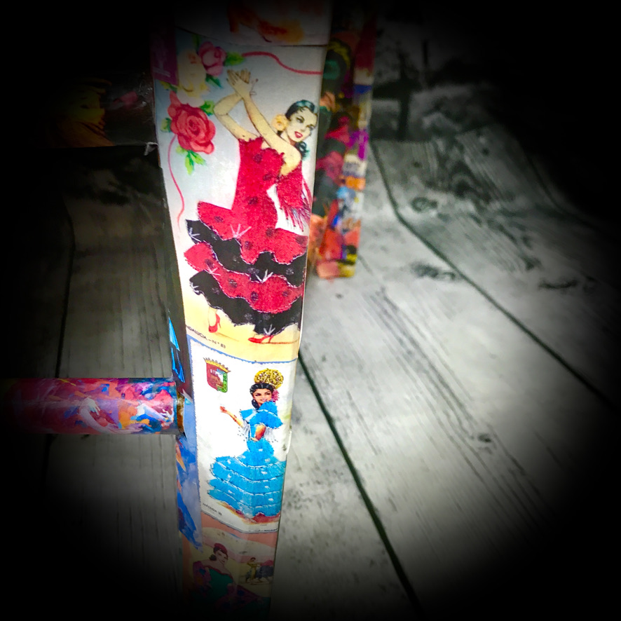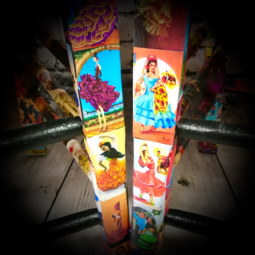 These 2 traditional chairs have been given new, foam seat pads covered in red and the frames hve been decoupaged with flamenca images to make truly unique pieces.