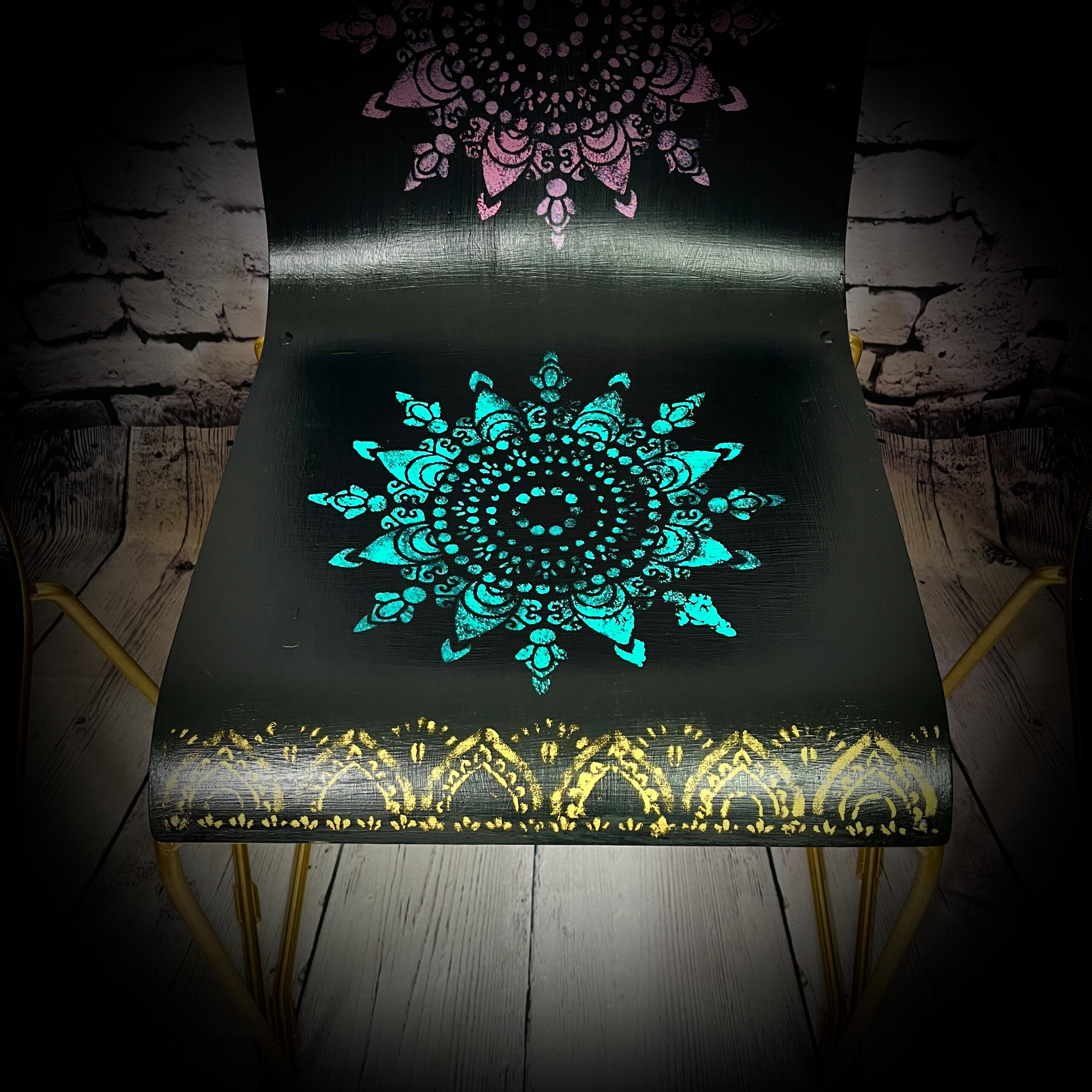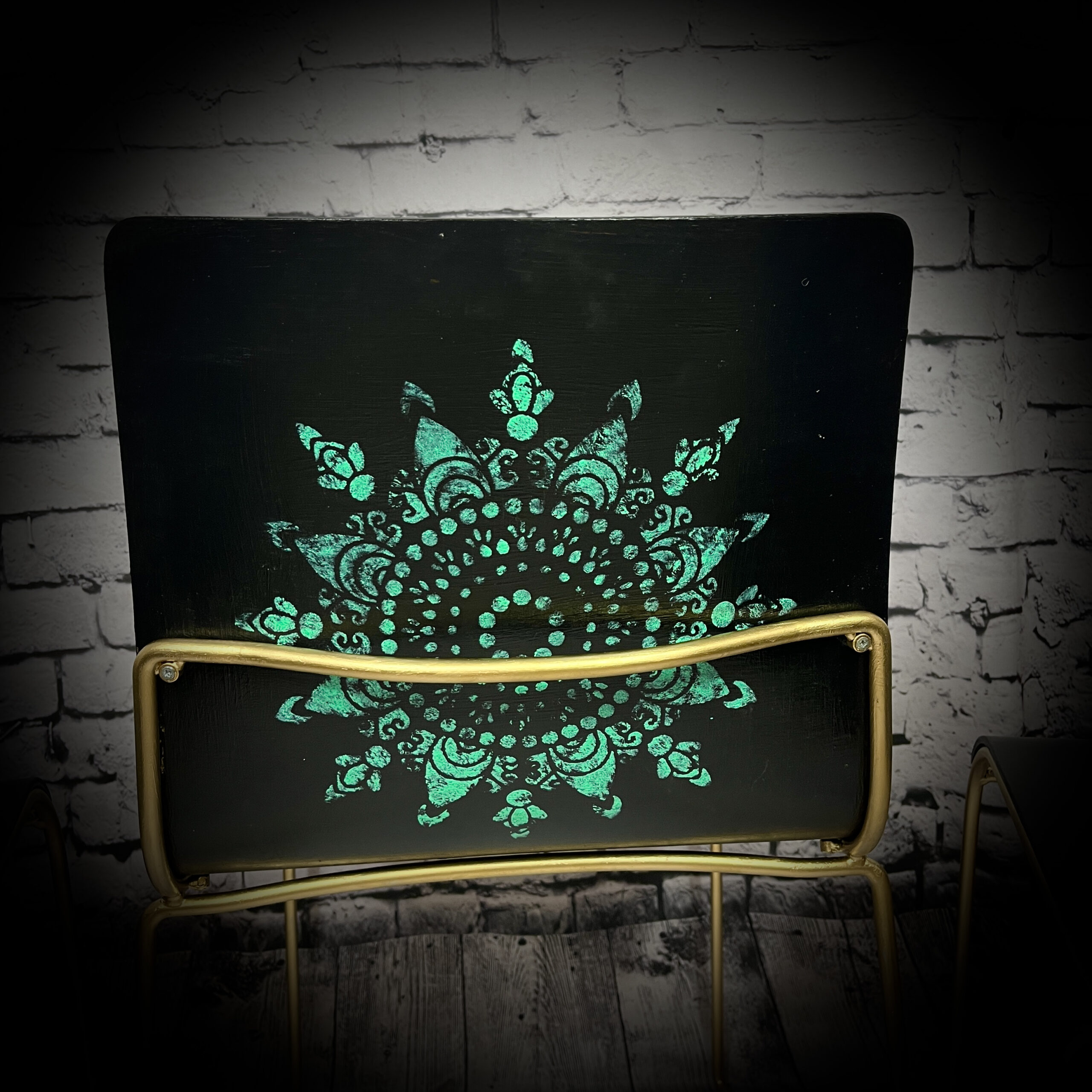 / 3 black and gold mandala chairs 250613