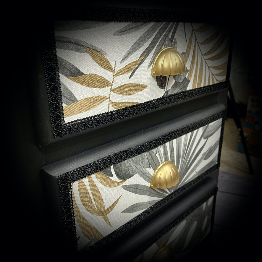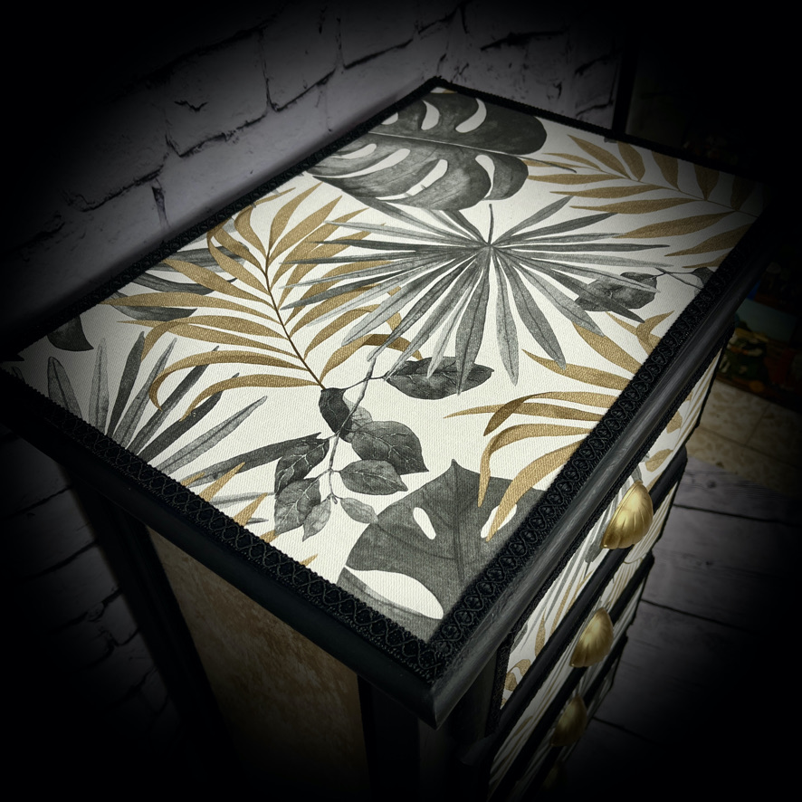 black cabinet with palm leaves 250512