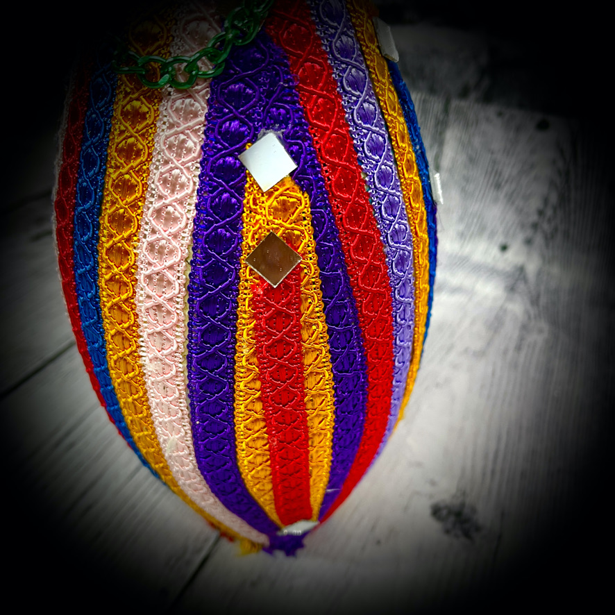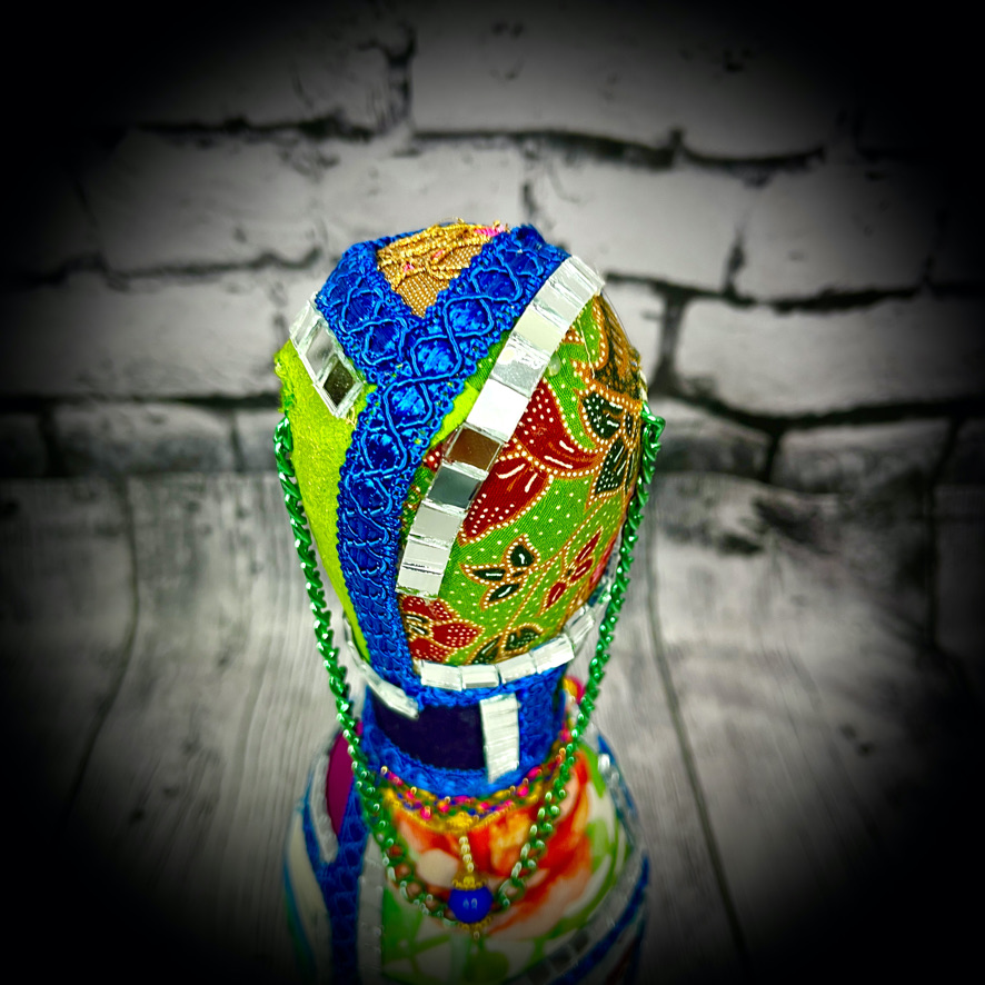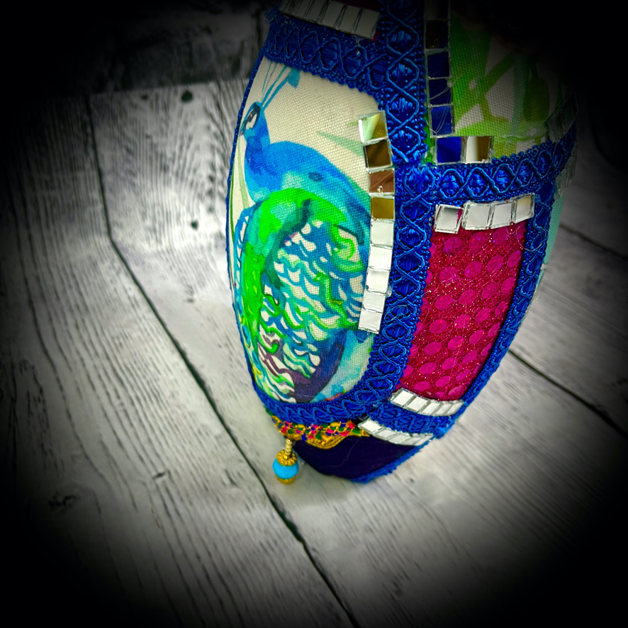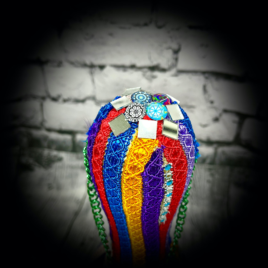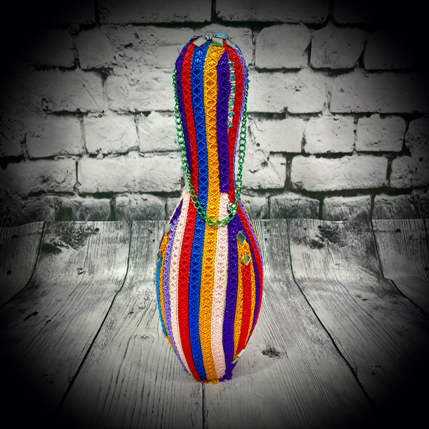 These bowling pins have been decorated to make colourful, eye-catching doorstops! They stand 38cms tall and have a carrying chain.