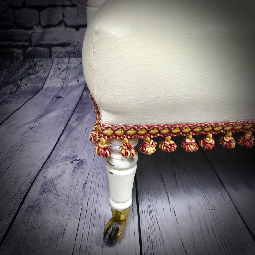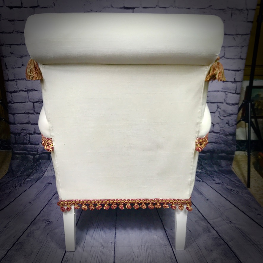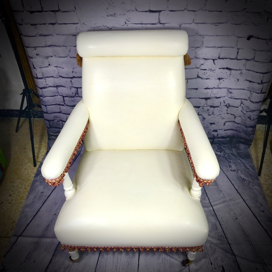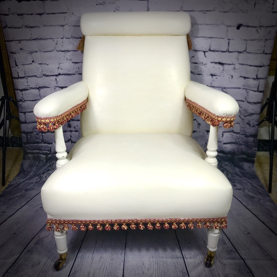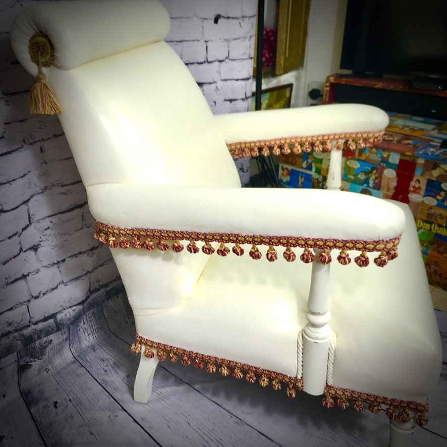 This incredibly comfortable armchair has been freshened up with an antique white chalk painted makeover. Three coats of wax mean that it’s smooth and inviting – just waiting to be sat in!