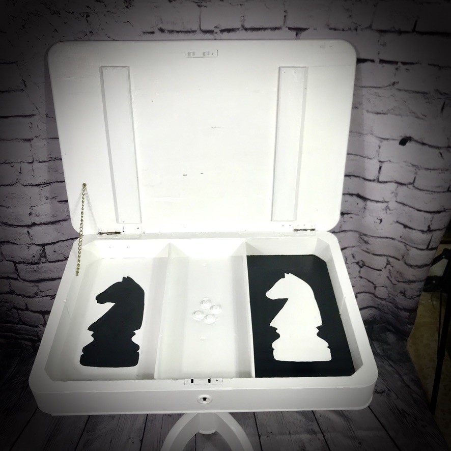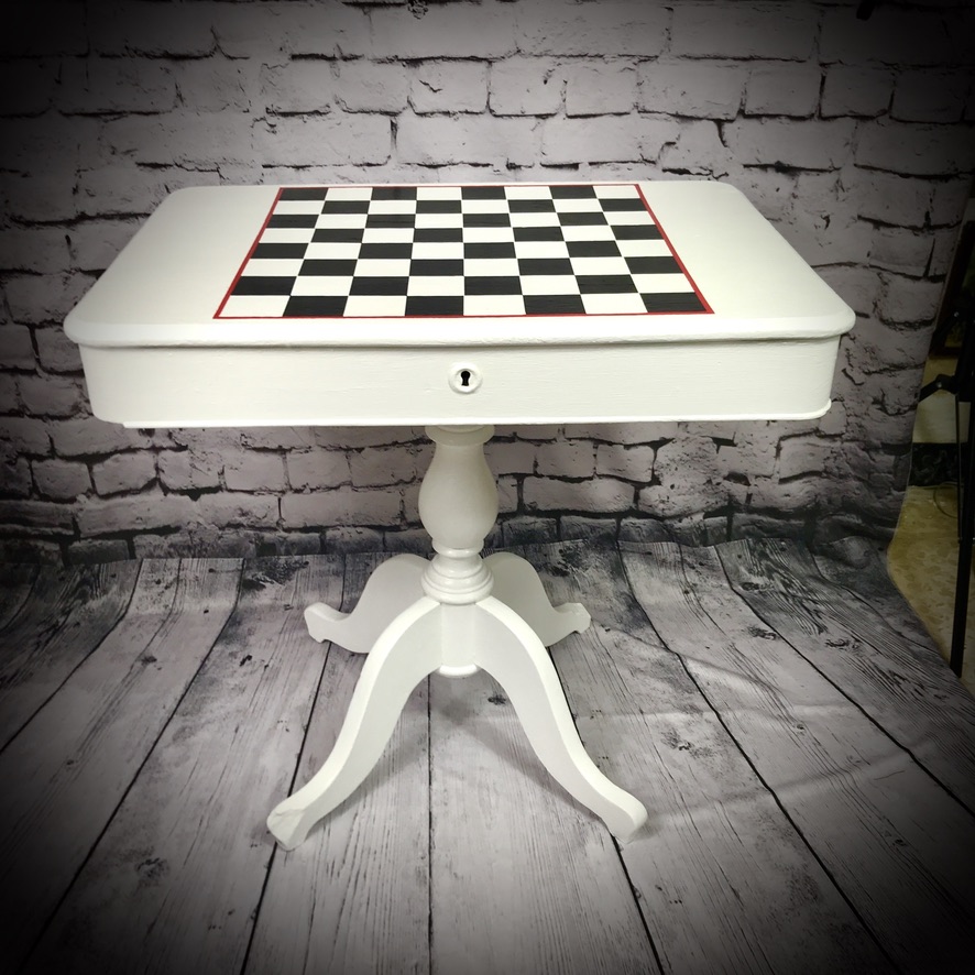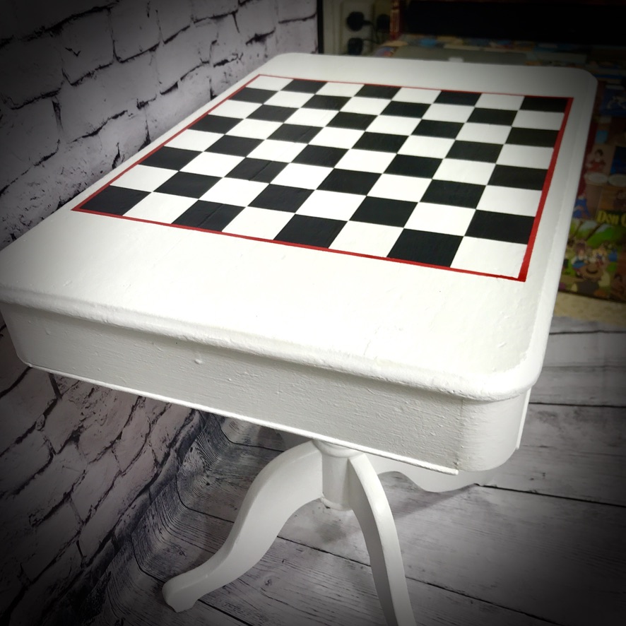 This lovely table was spotted by the bins! Somebody had decided its useful life was over – but not us! So, after a fair bit of repair, renovation and painting, we are now pleased to offer this chessboard table – just perfect for any chess players out there and includes storage space for your chess pieces.