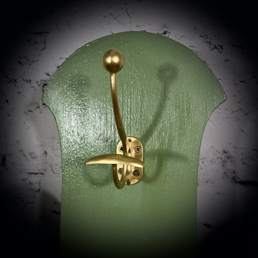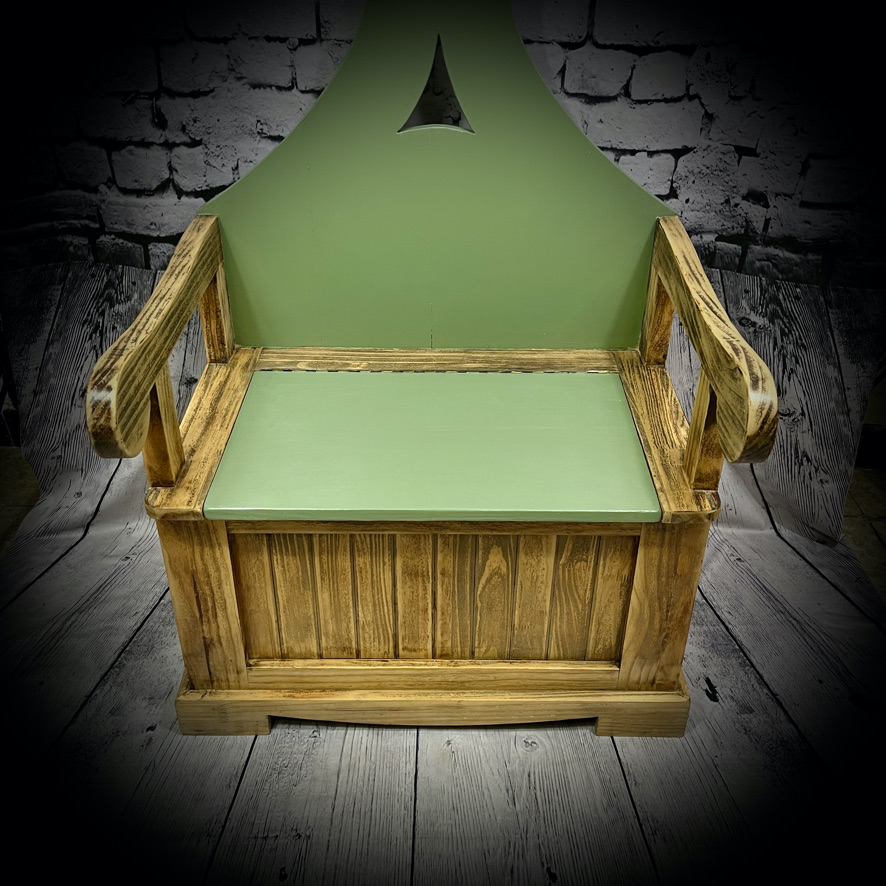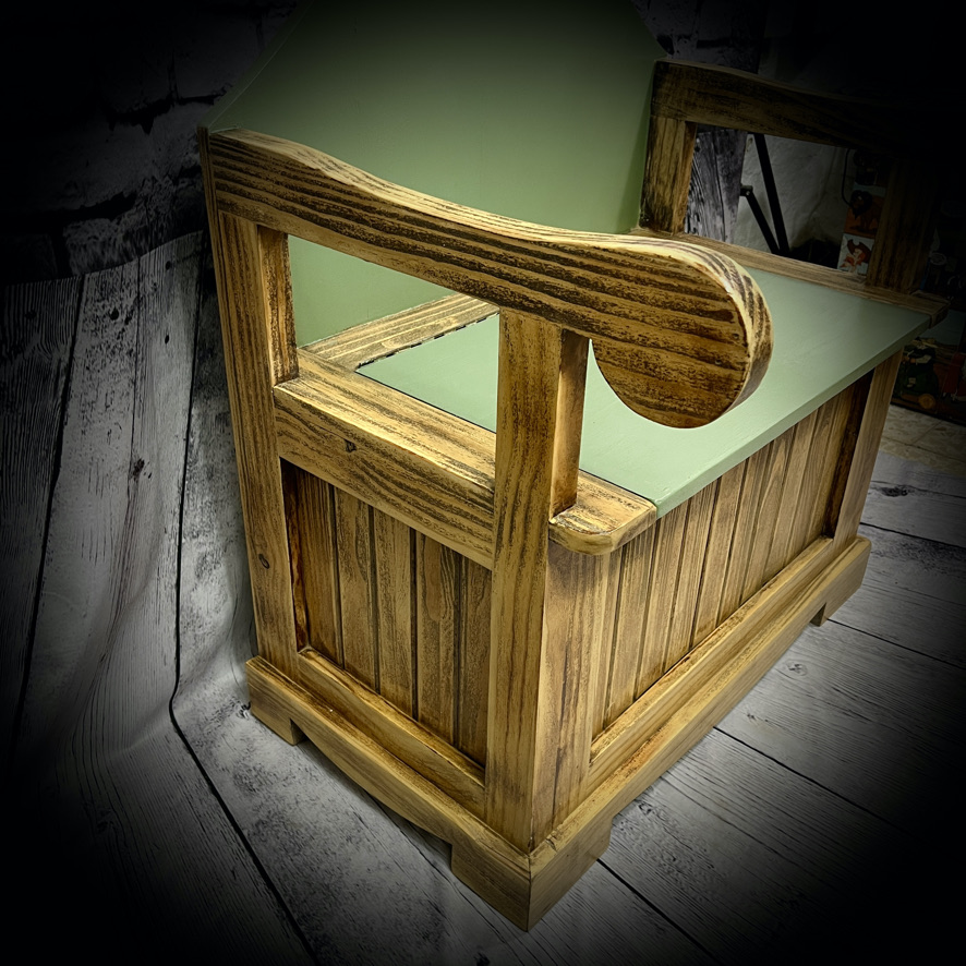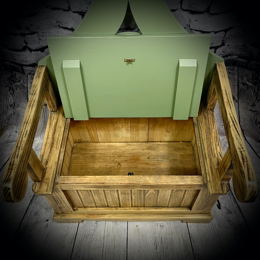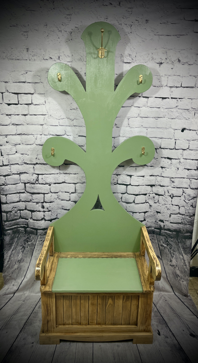 A totally unique and incredibly practical coat stand with seat and storage. Stripped, varnished/painted in our “country house” style, this piece measures 1.8m tall!