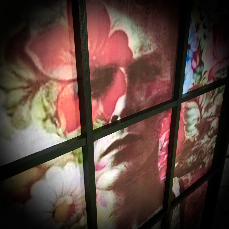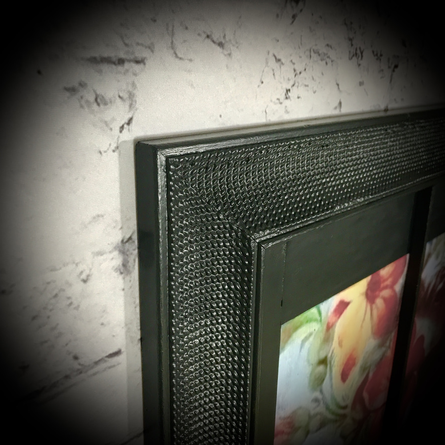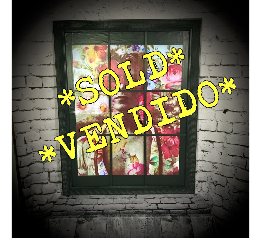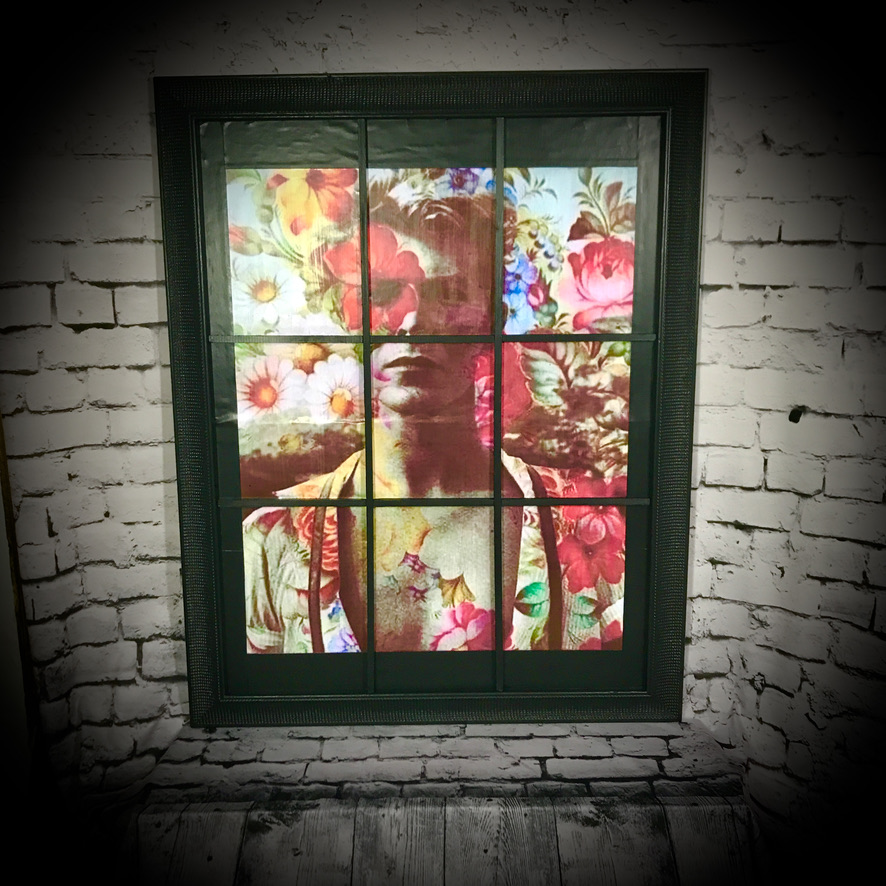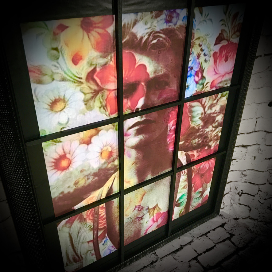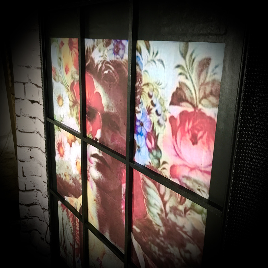 This David Bowie wall art has been created with a Bowie print, mounted into an old picture frame with added beading to resemble a window – totally unique!