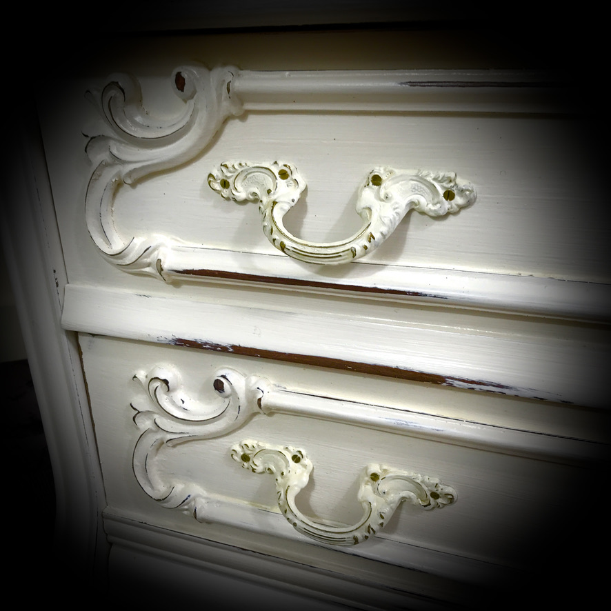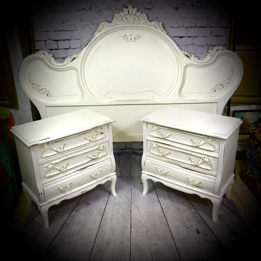 Distressed Headboard & Side Cabinets