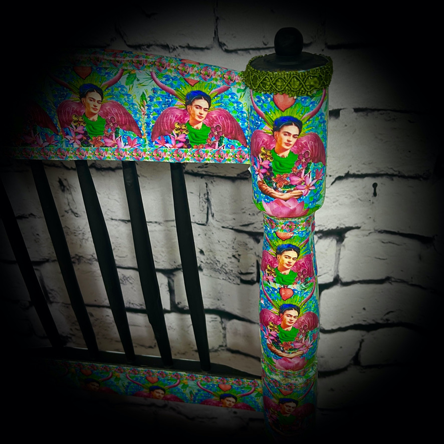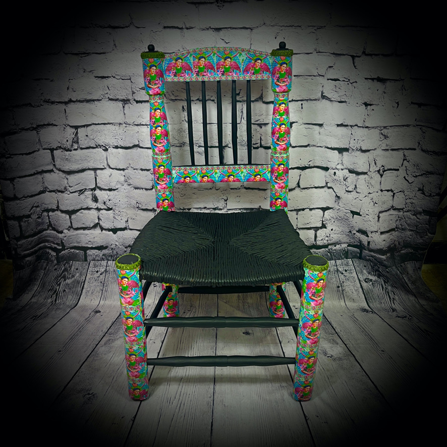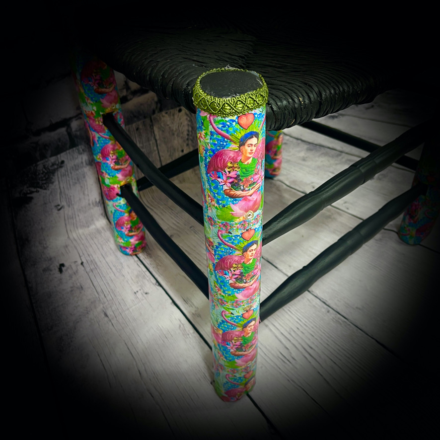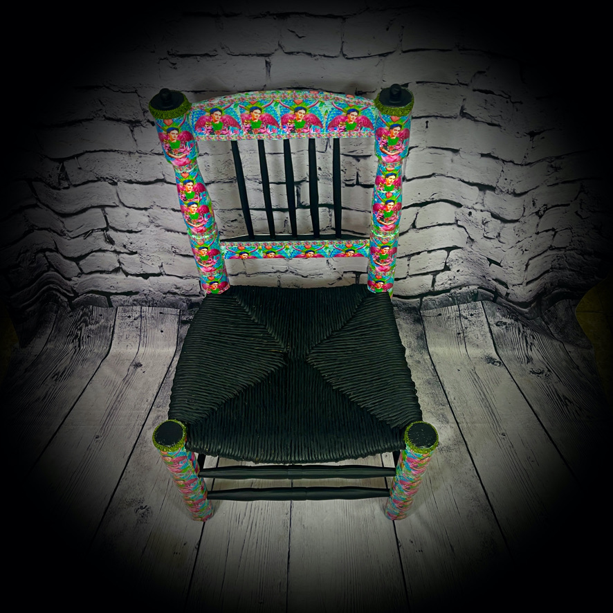 This classic Andalus chair has been given a unique makeover with black paintwork and decoupaged with a Frida Kahlo image.