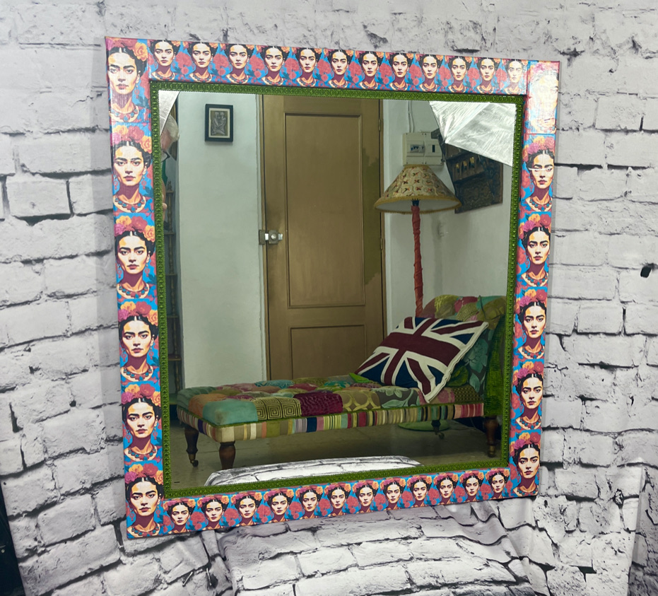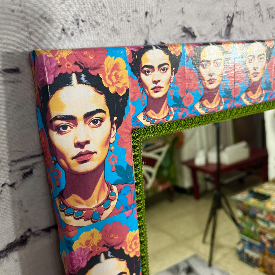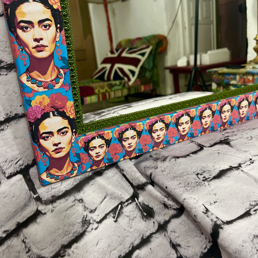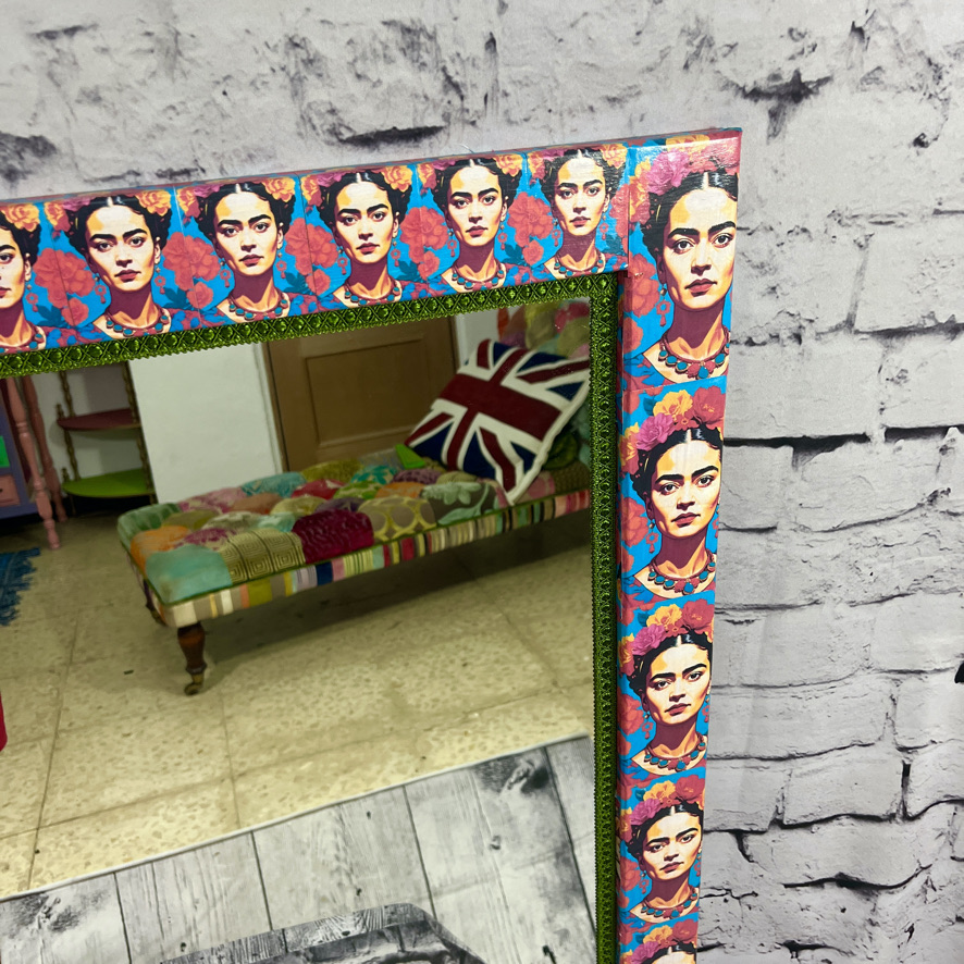 This plain wooden mirror has been decoupaged with an image of Frida Kahlo to create a stunning and unique piece of furniture – guaranteed to catch the eye!