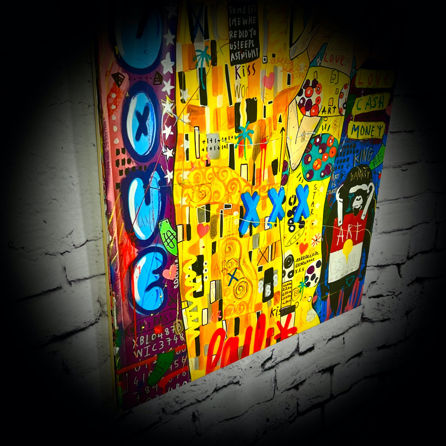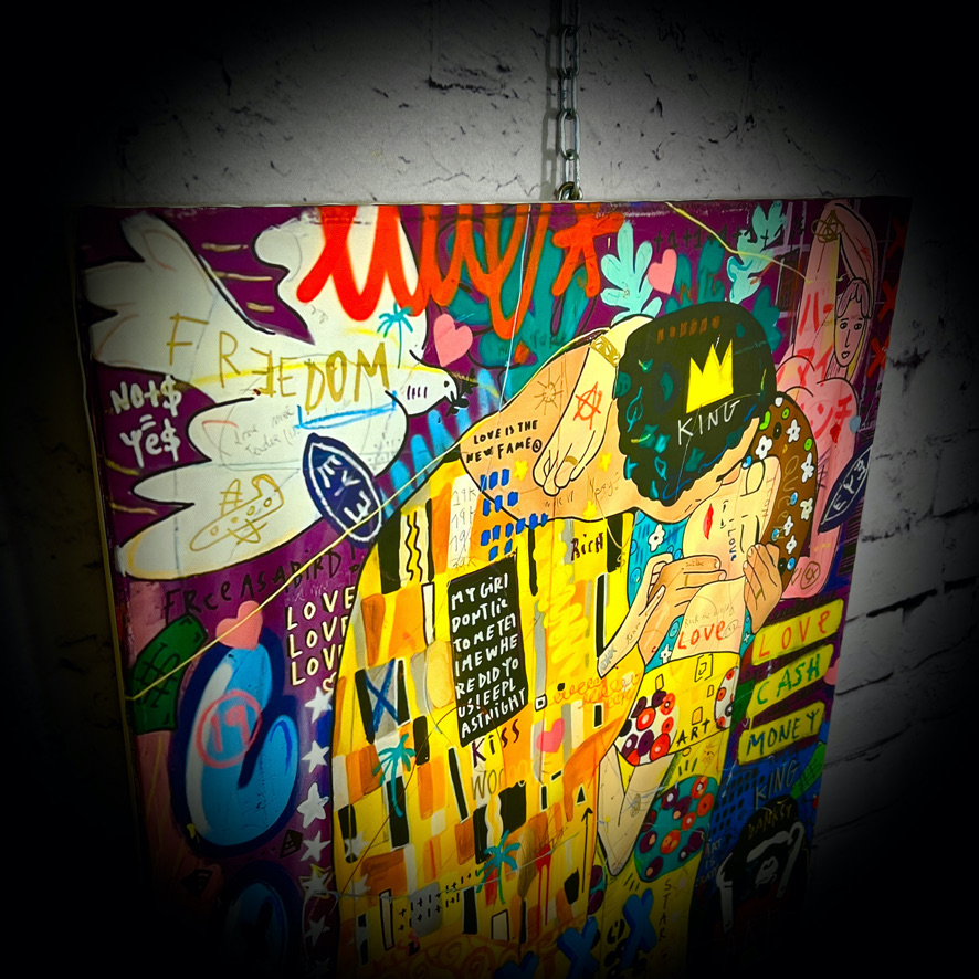 Multi-coloured, ‘graffiti’ print making a wow-factor wall art!