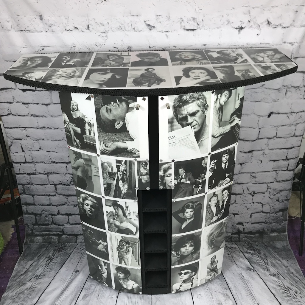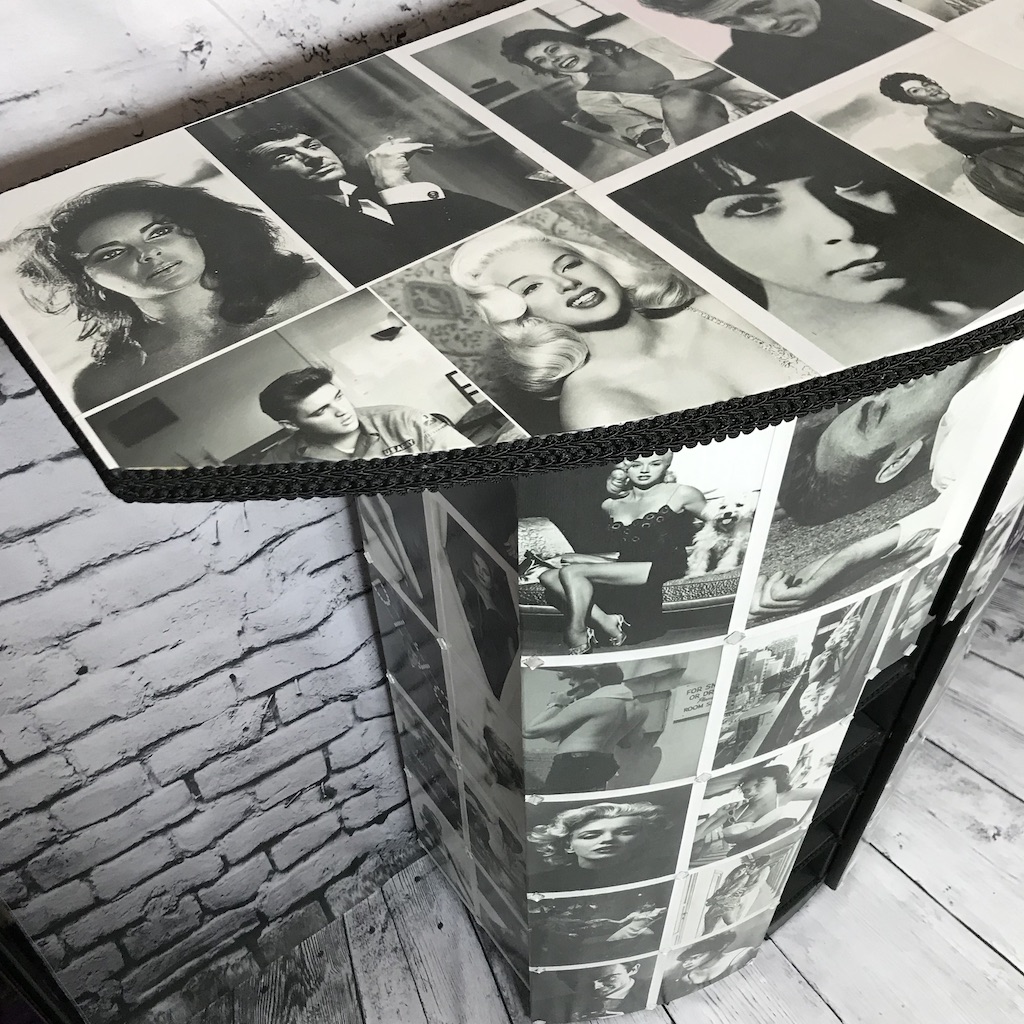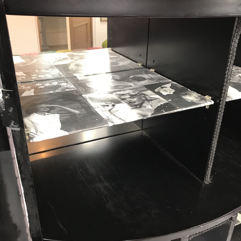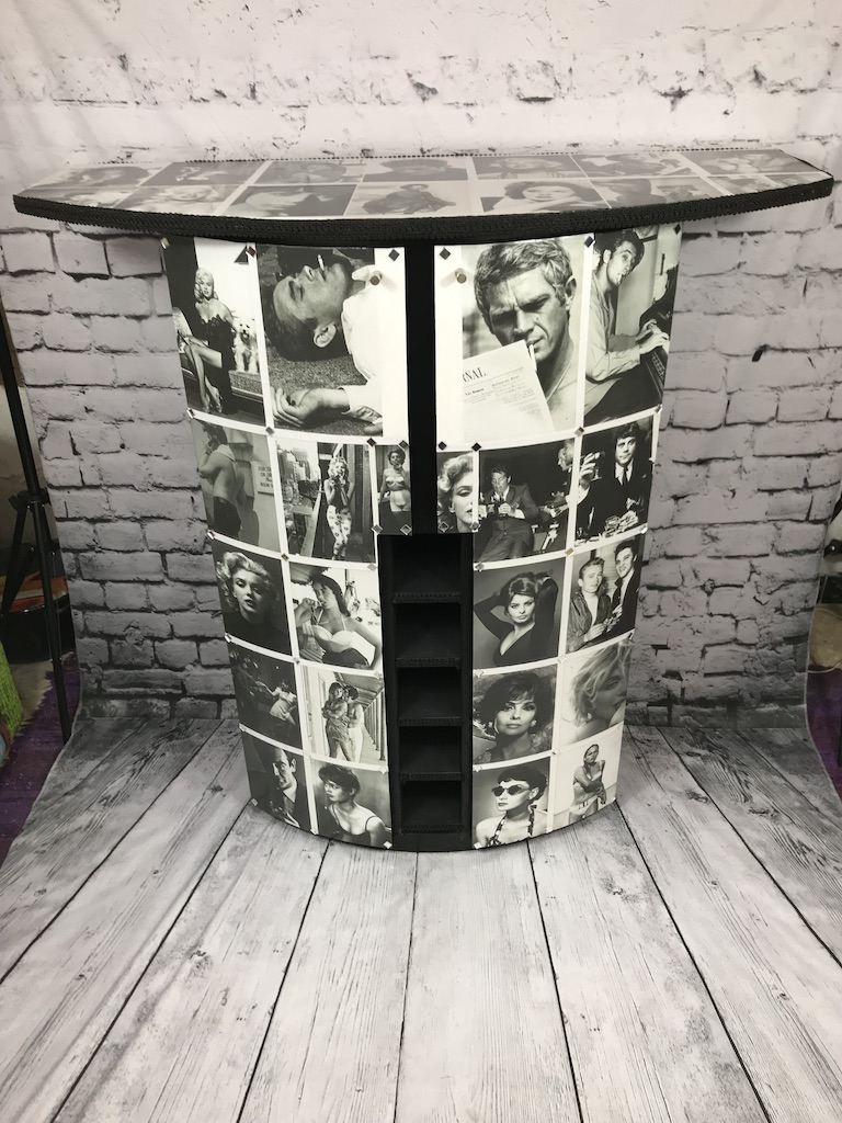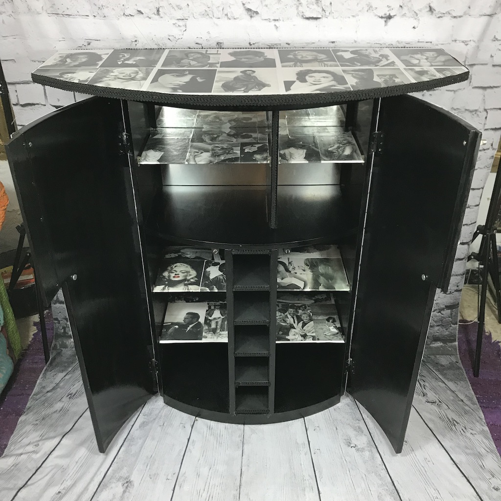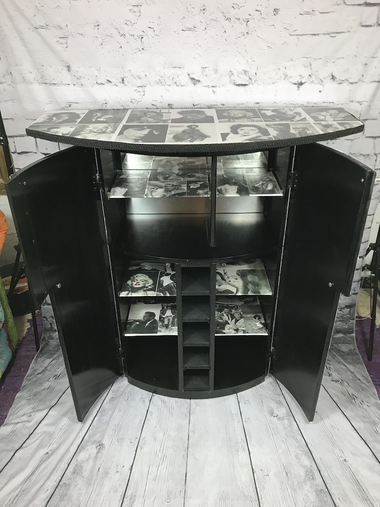 This free-standing cocktail bar has been turned from a plain black unit into a celebration of Hollywood film stars!