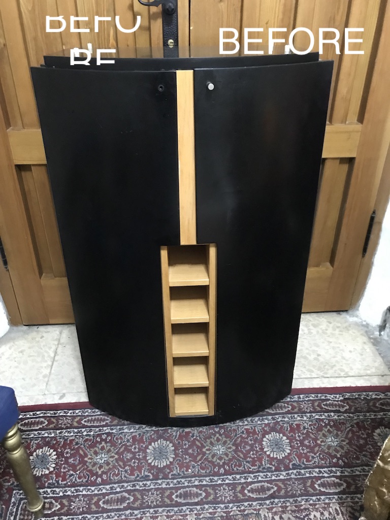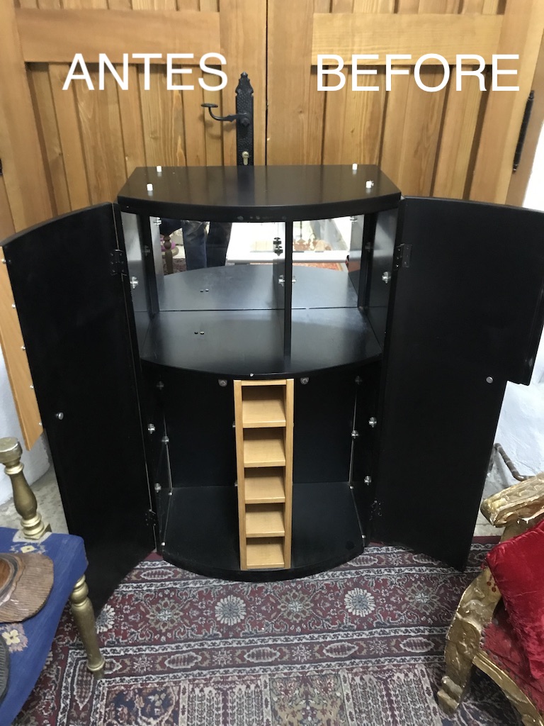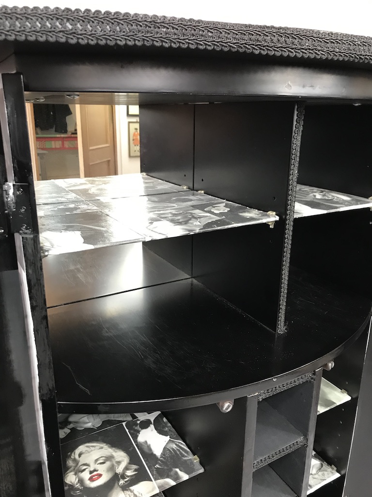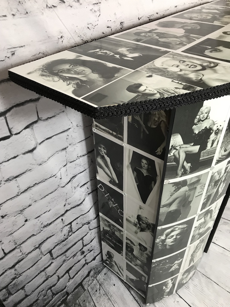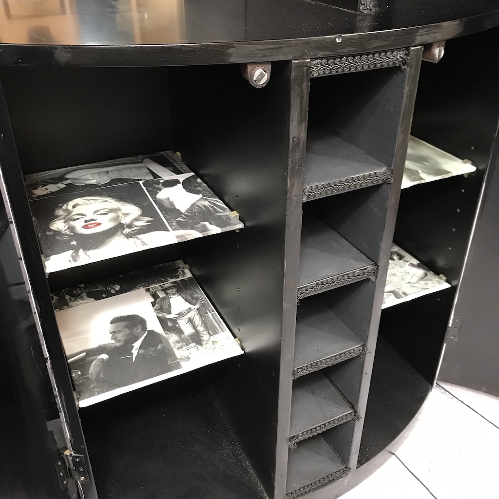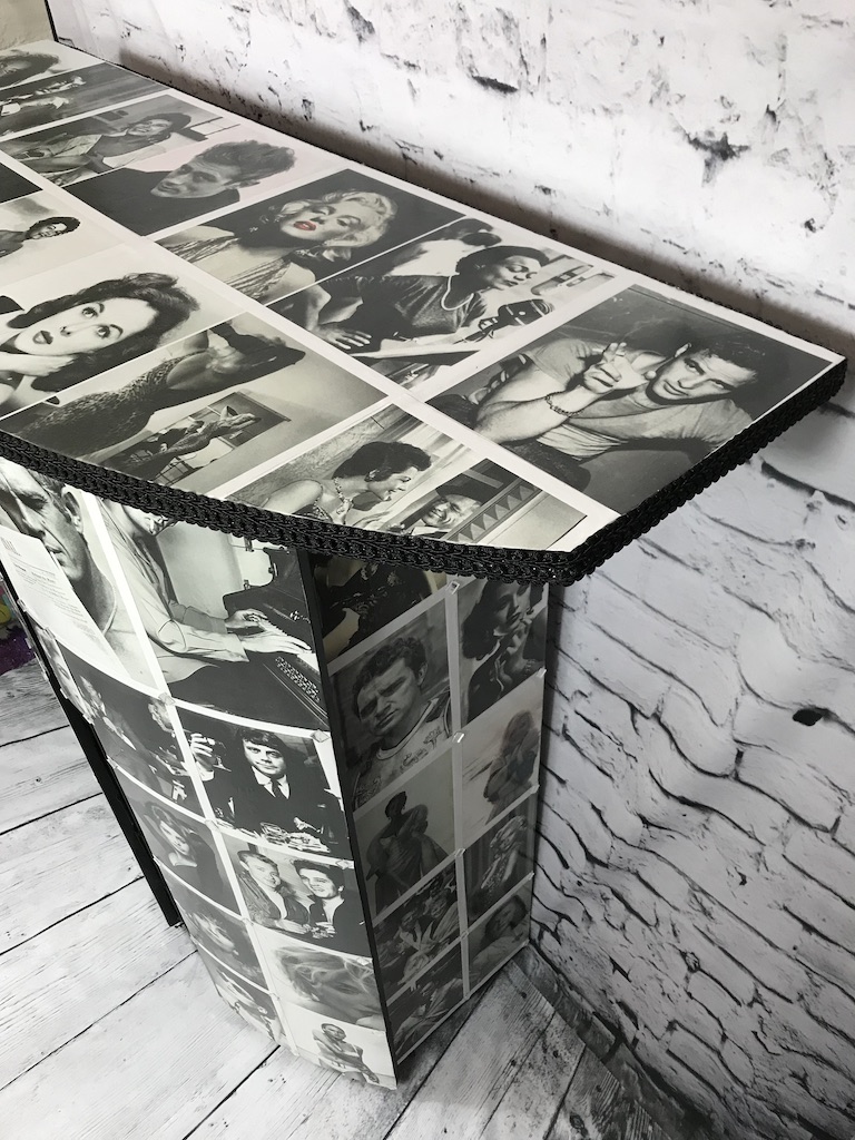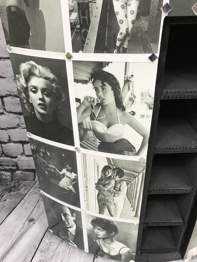 This free-standing cocktail bar has been turned from a plain black unit into a celebration of Hollywood film stars!
