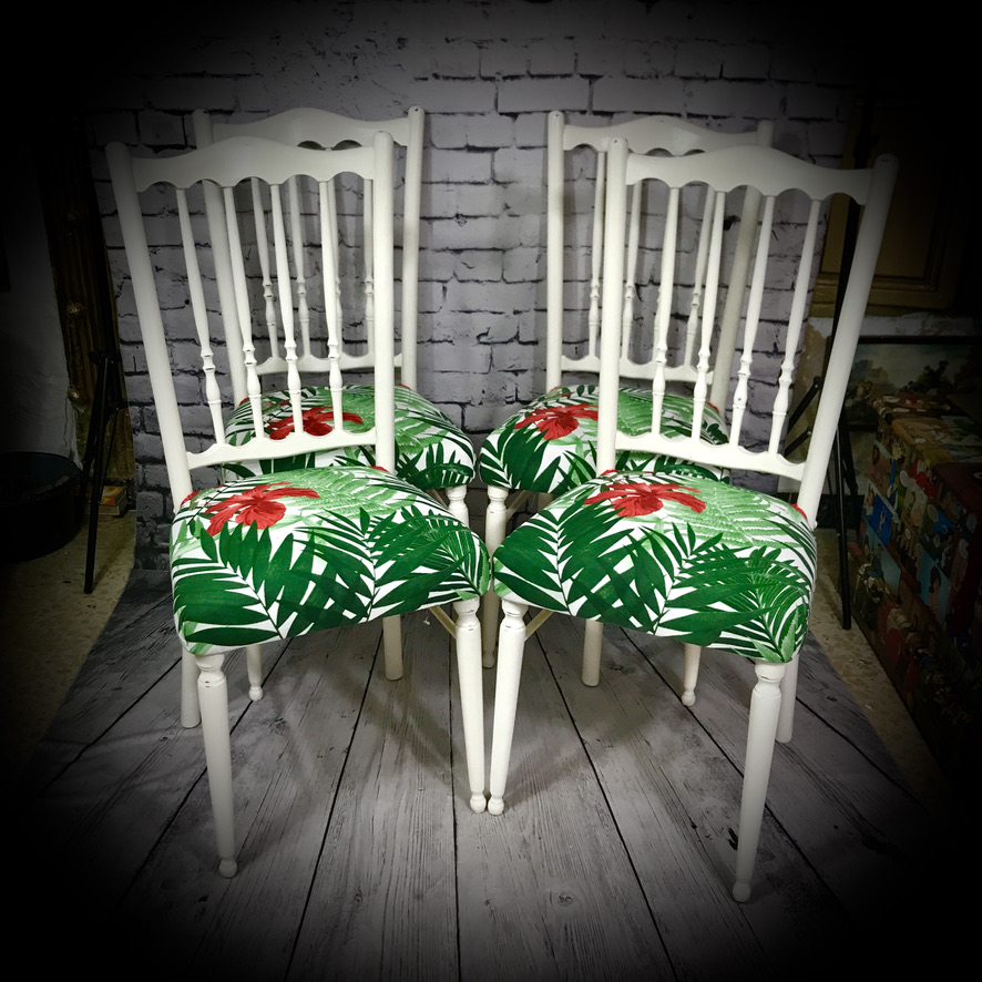 Spotted by the bins, this dining table and 4 chairs has been transformed into a bright, colourful and totally unique set!