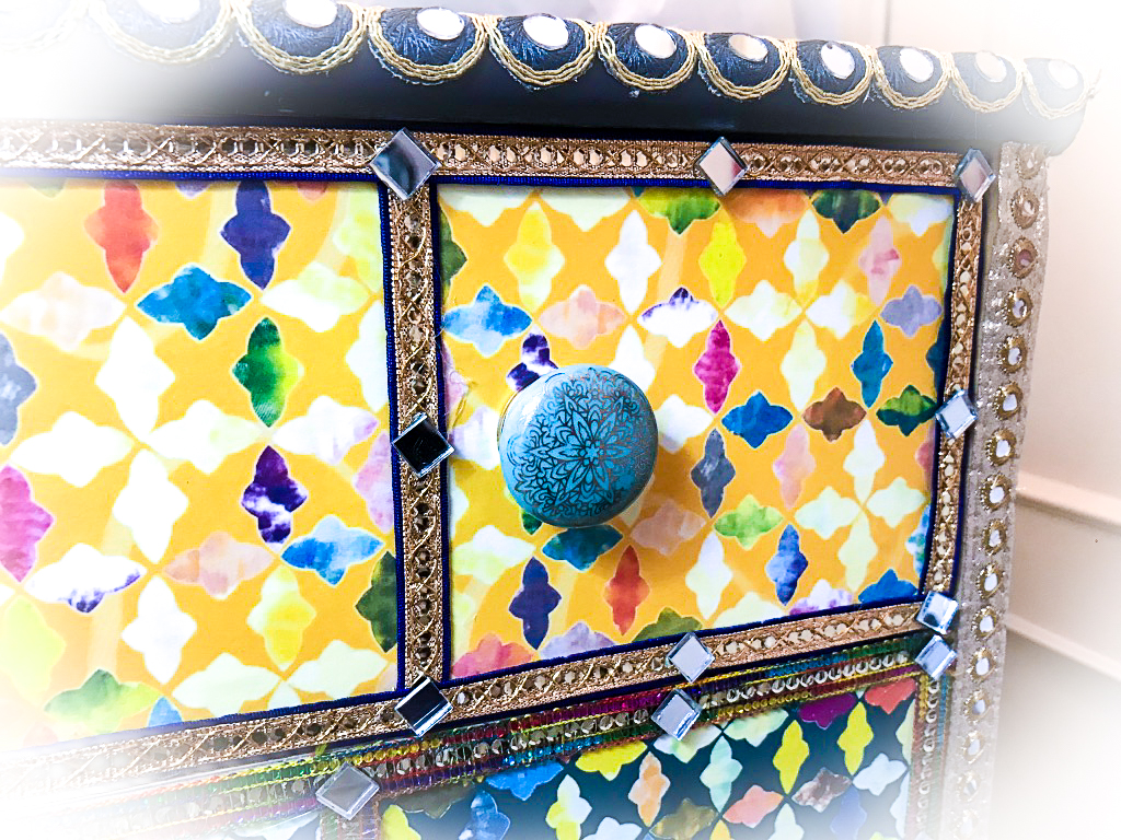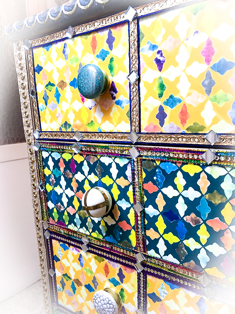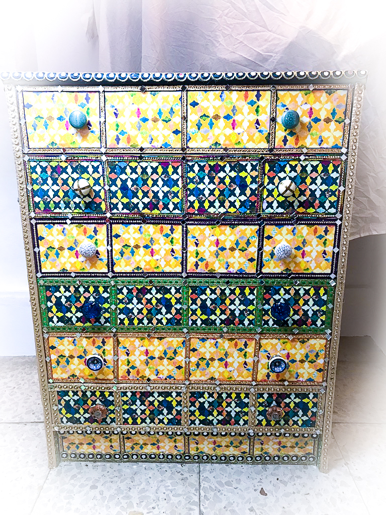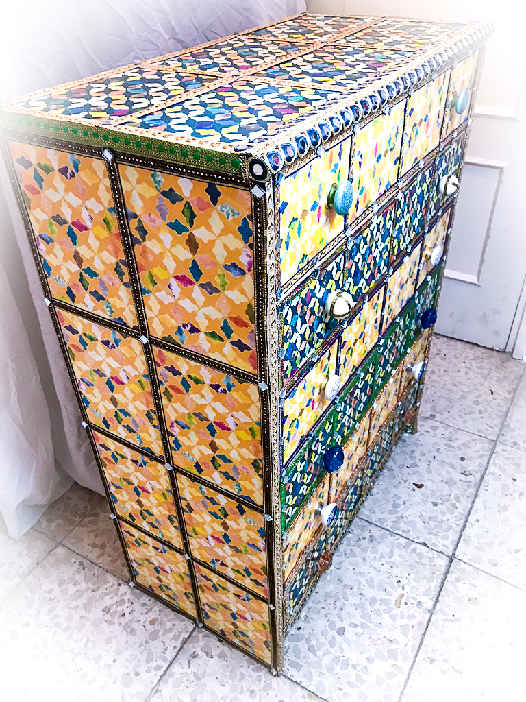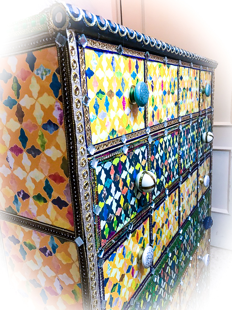 A plain, bland chest of drawers is transformed into a moorish-style, feast of colours!