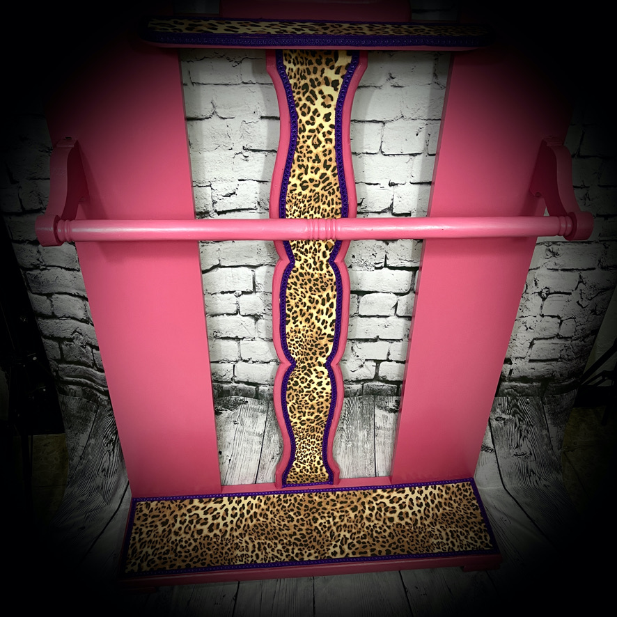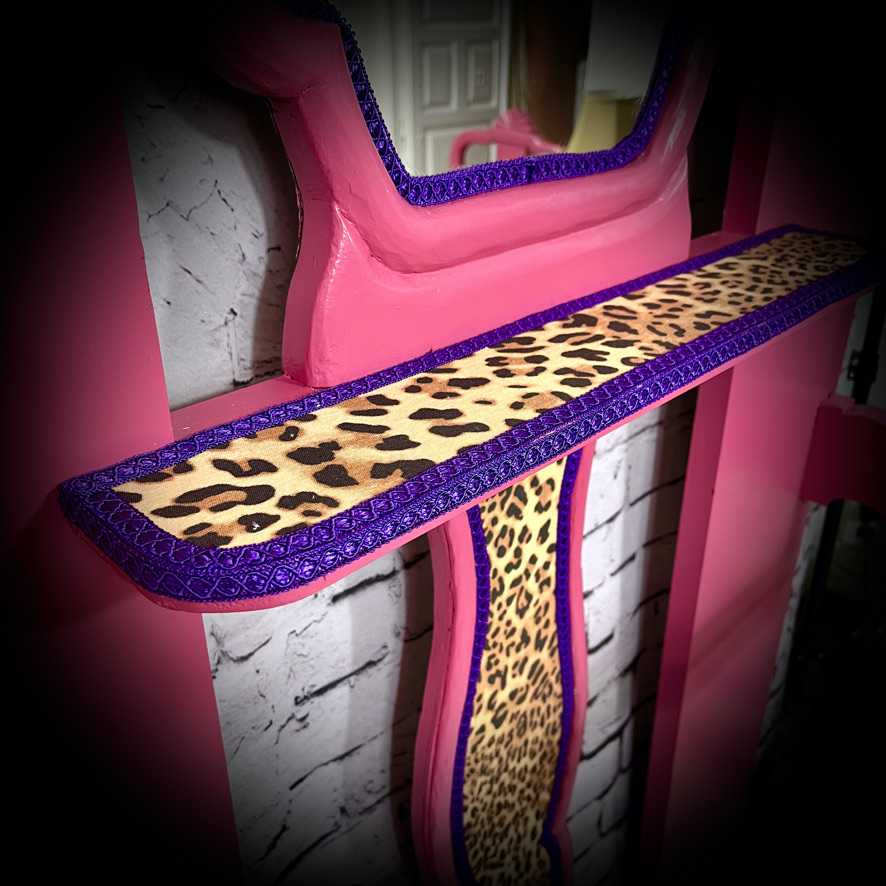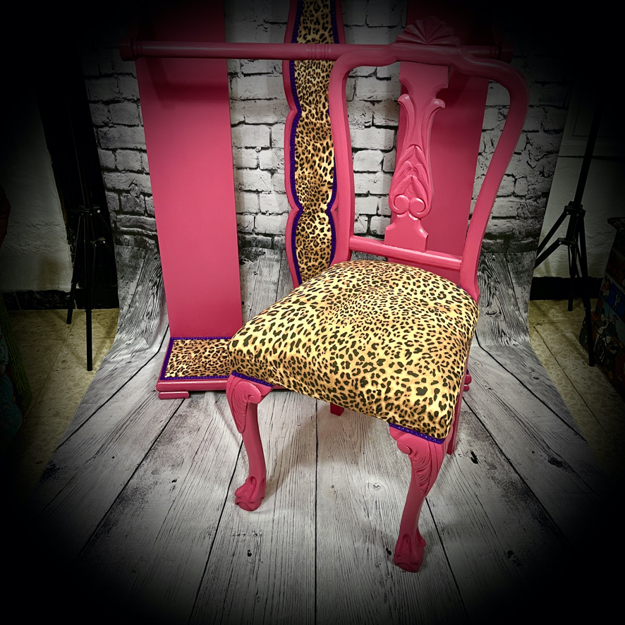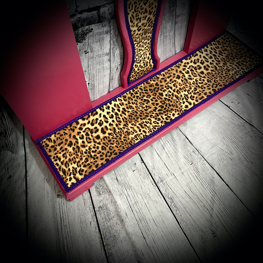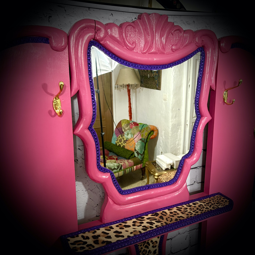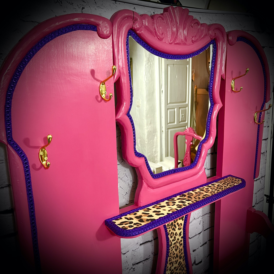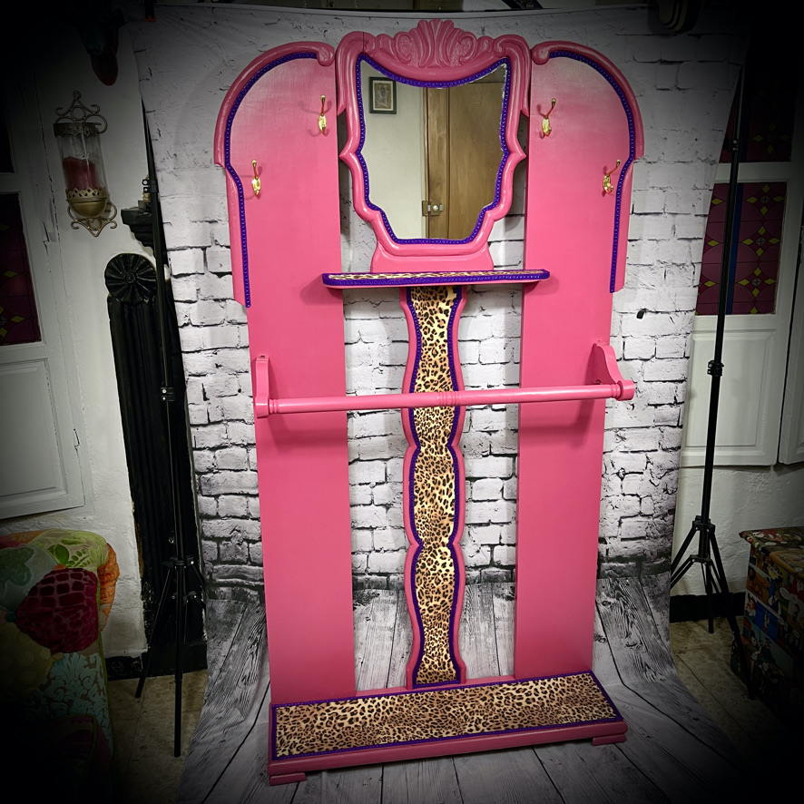This traditional hallstand has been given a very lively makeover – painted pink and detailing in leopard-print, it now makes a unique, eye-catching and functional piece of furniture.