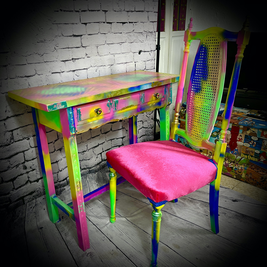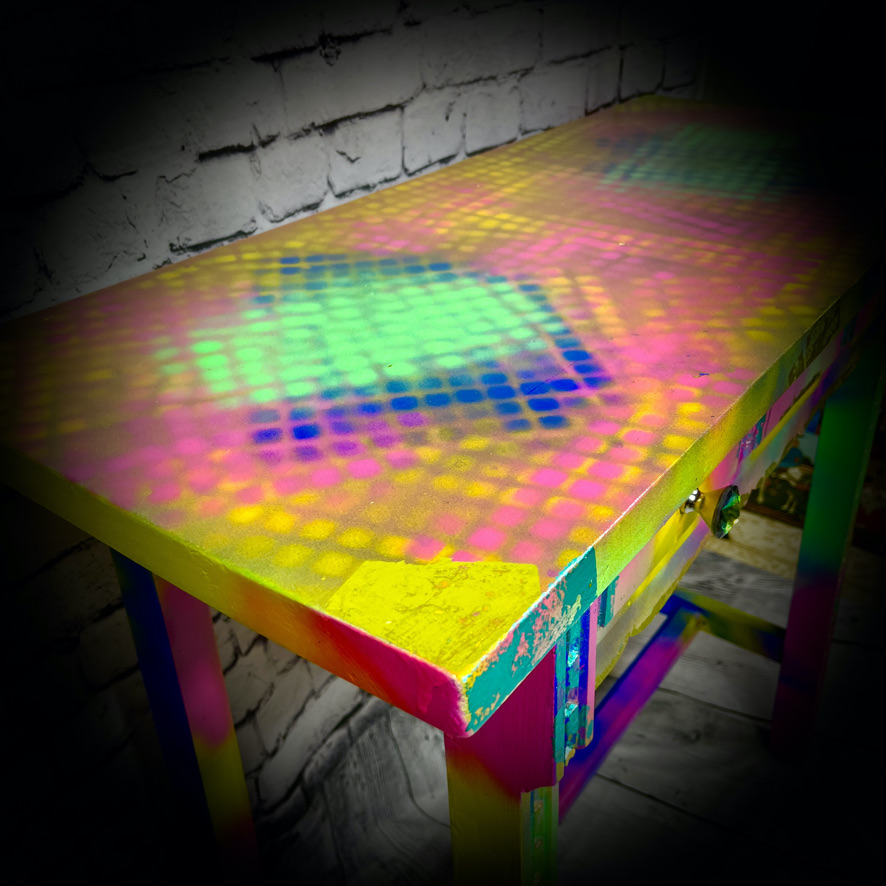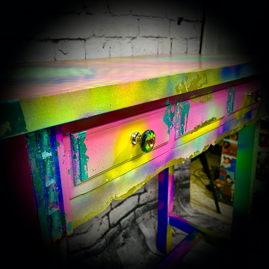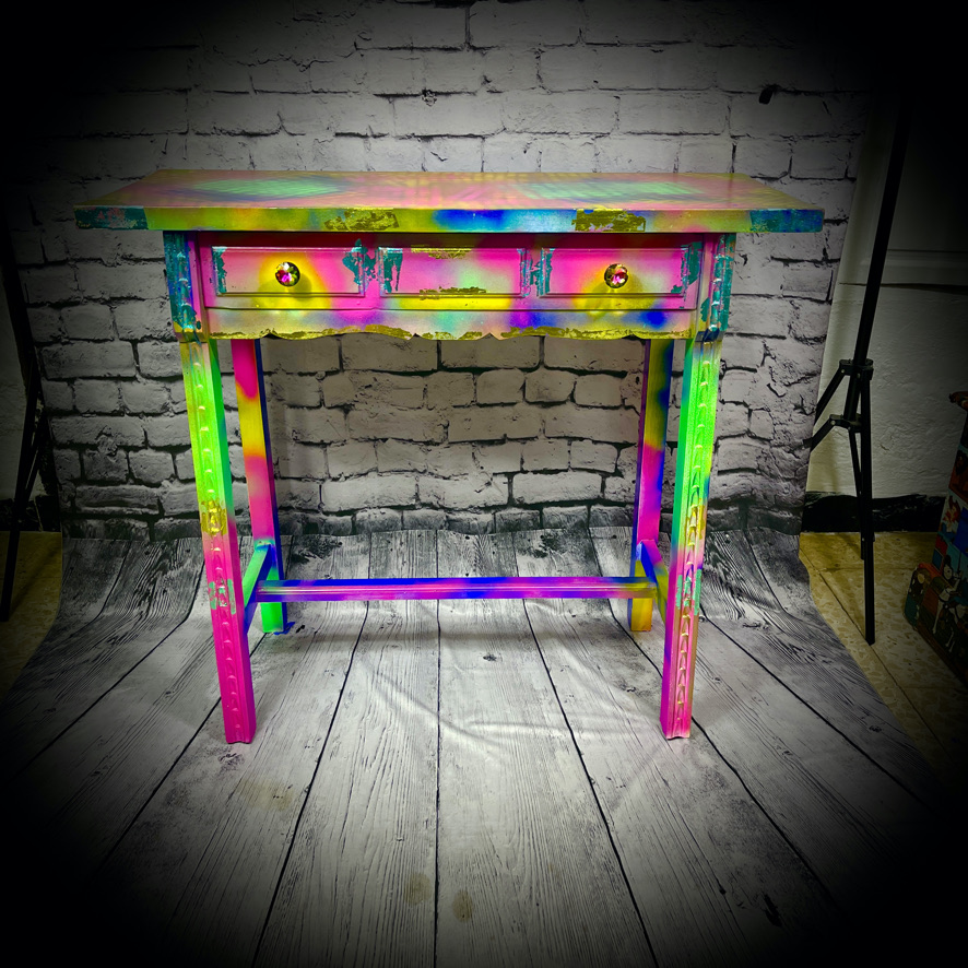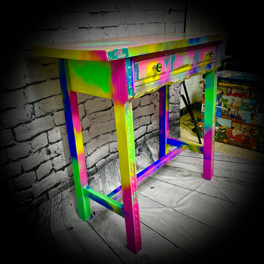 This stylish and solid console table has been given a multi-colour makeover to make a truly WOW-factor and functional piece of furniture.