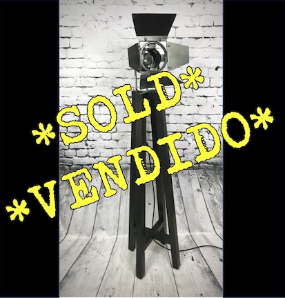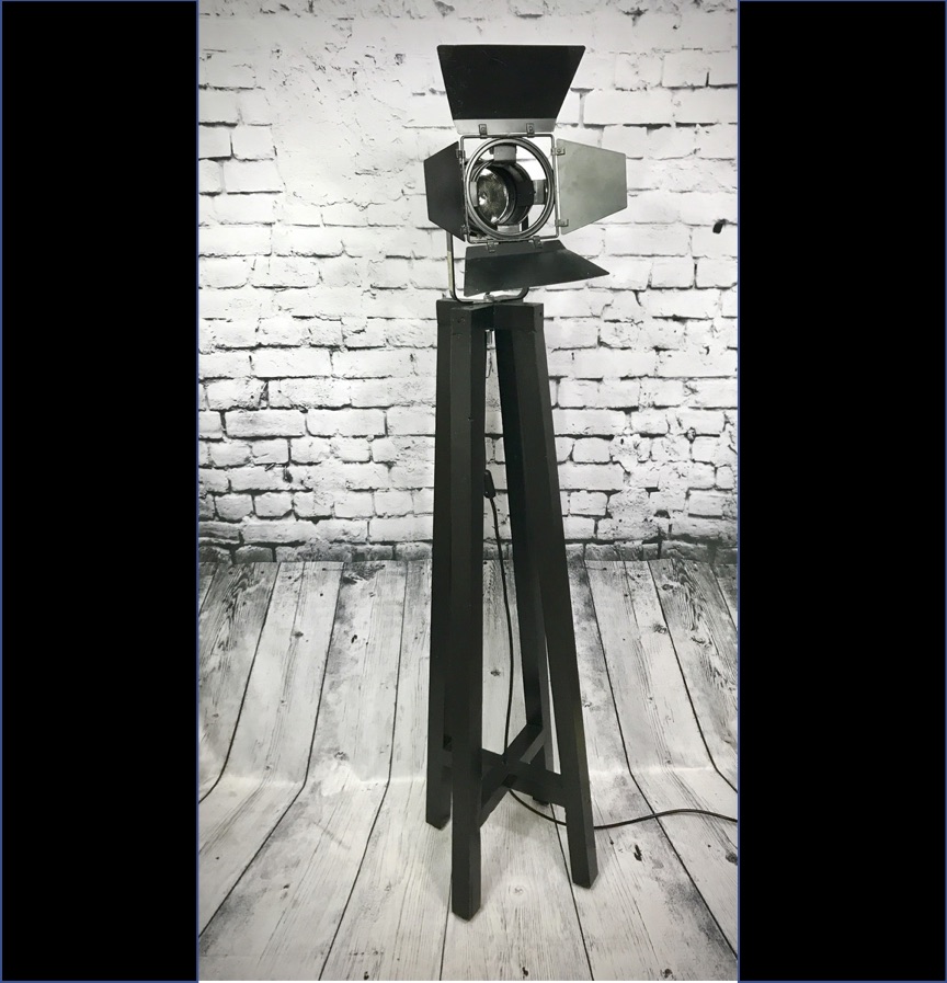 This lamp has a matching, taller ‘brother’ which is shown in some of the photos – details of this taller lamp can be viewed at this link – Tall Theatre Spotlight Lamp. This taller unit is priced at 85€ but the pair can be purchased together for €130 – a 20€ saving.